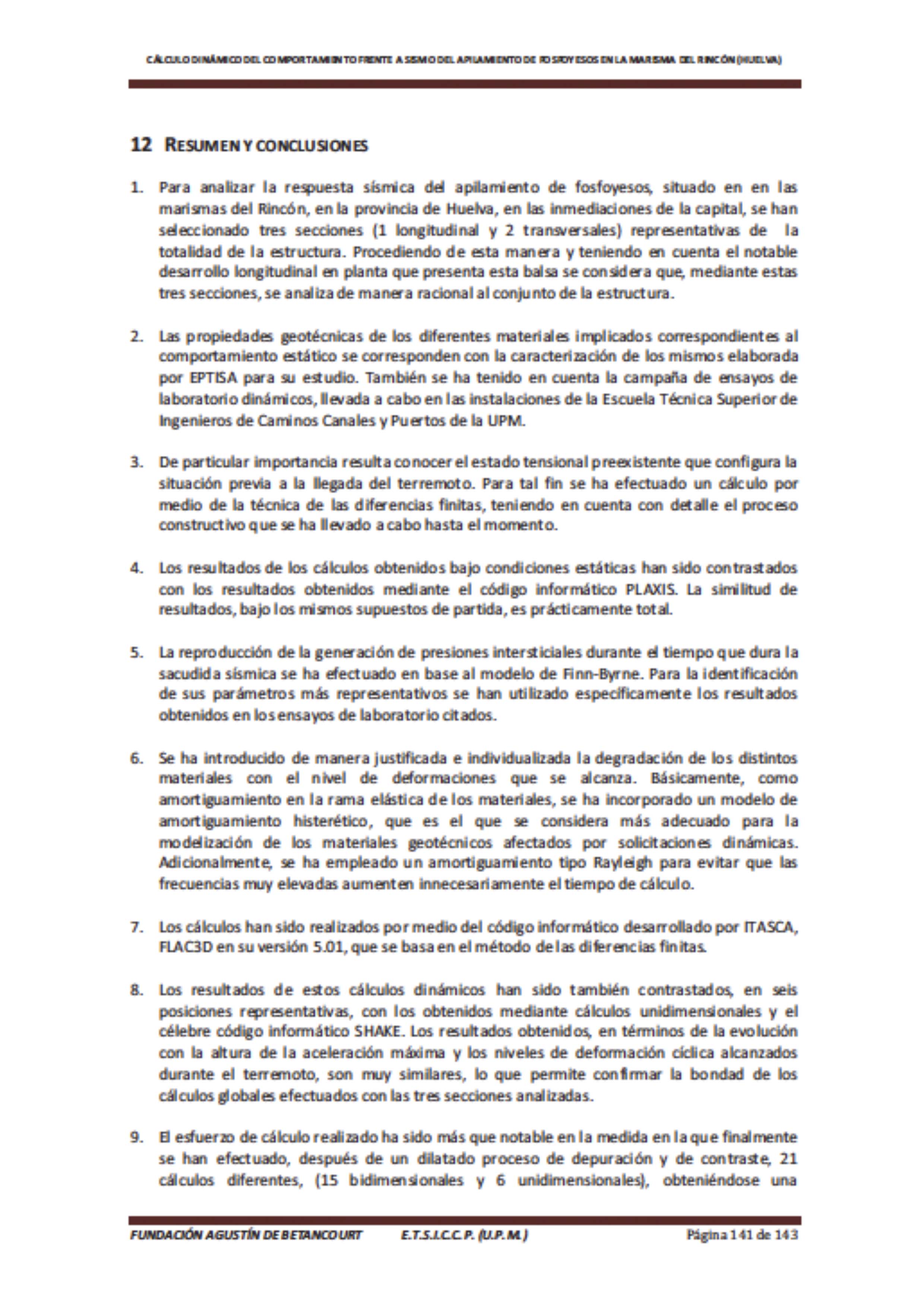 Conclusiones respuesta sísmica del emplazamiento de fosfoyesos