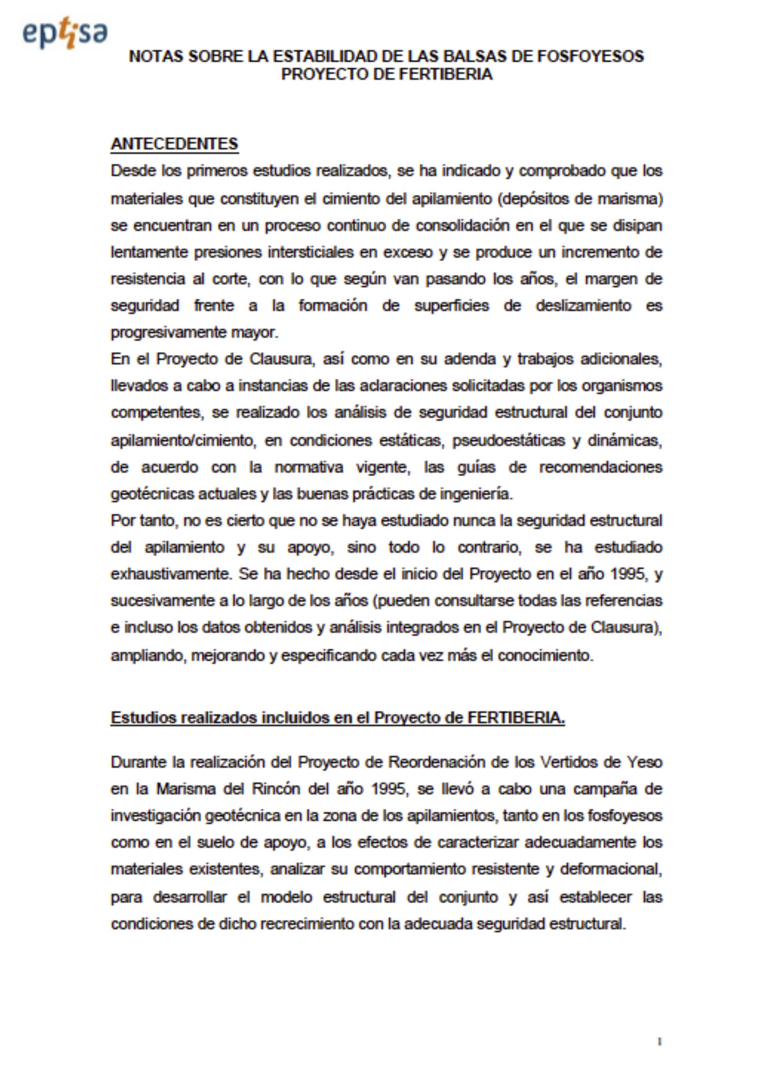 Notas sobre la estabilidad de las balsas de fosfoyesos – Proyecto de Fertiberia