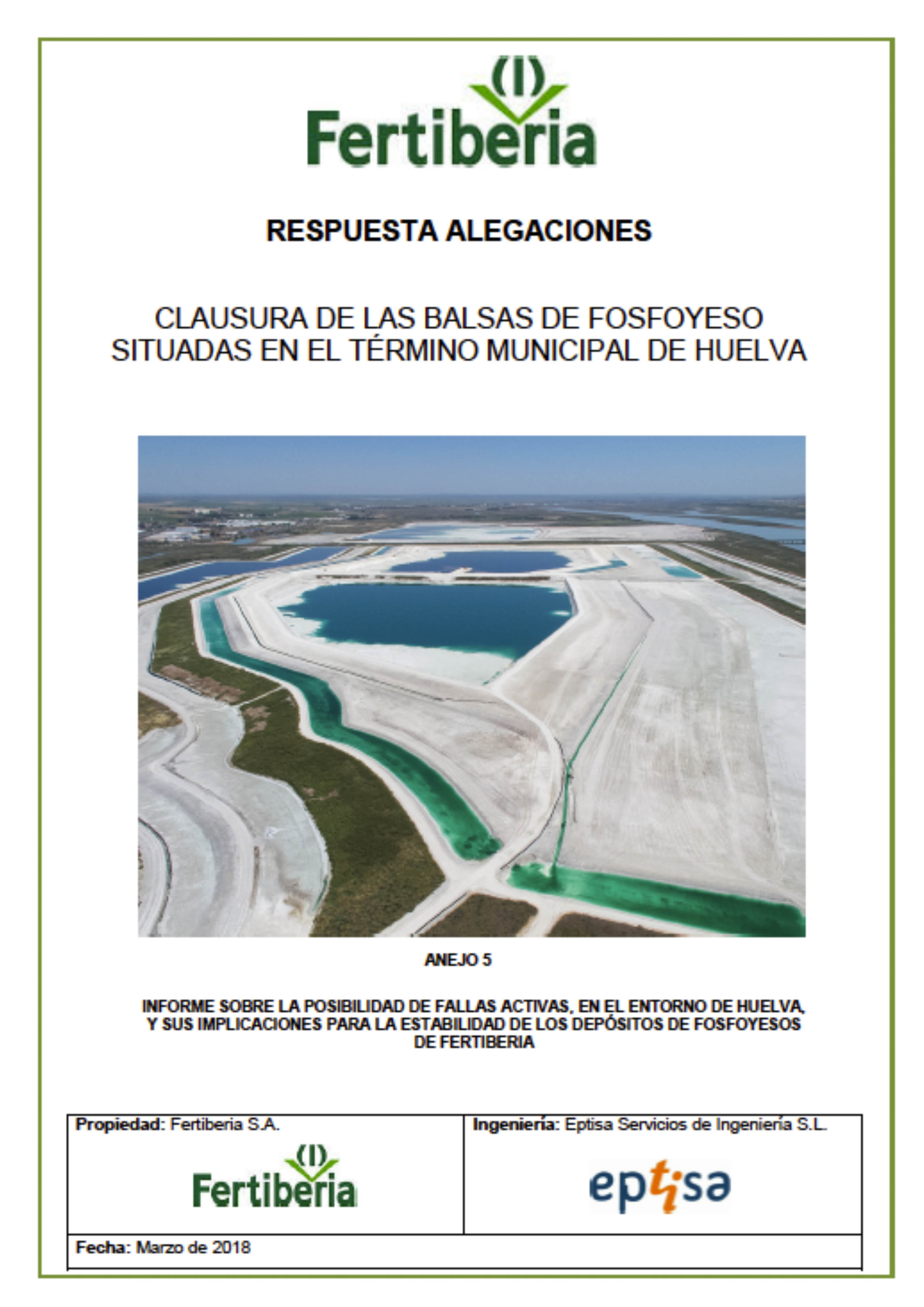 Informe sobre la posibilidad de fallas activas, en el entorno de Huelva, y sus implicaciones para la estabilidad de los depósitos de fosfoyesos de fertiberia